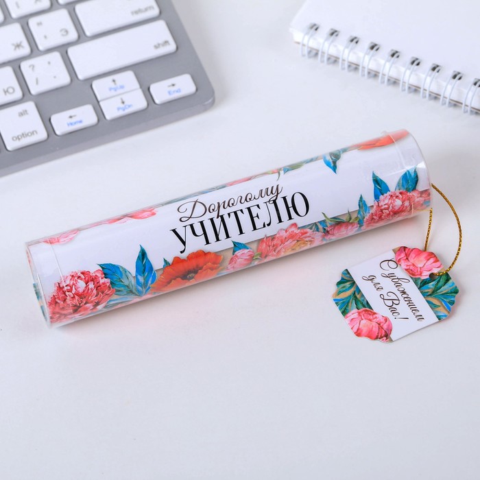 Ручка шариковая, синяя паста, 1 мм, пластик, автоматическая, в тубусе «Дорогому учителю!» — Характеристики