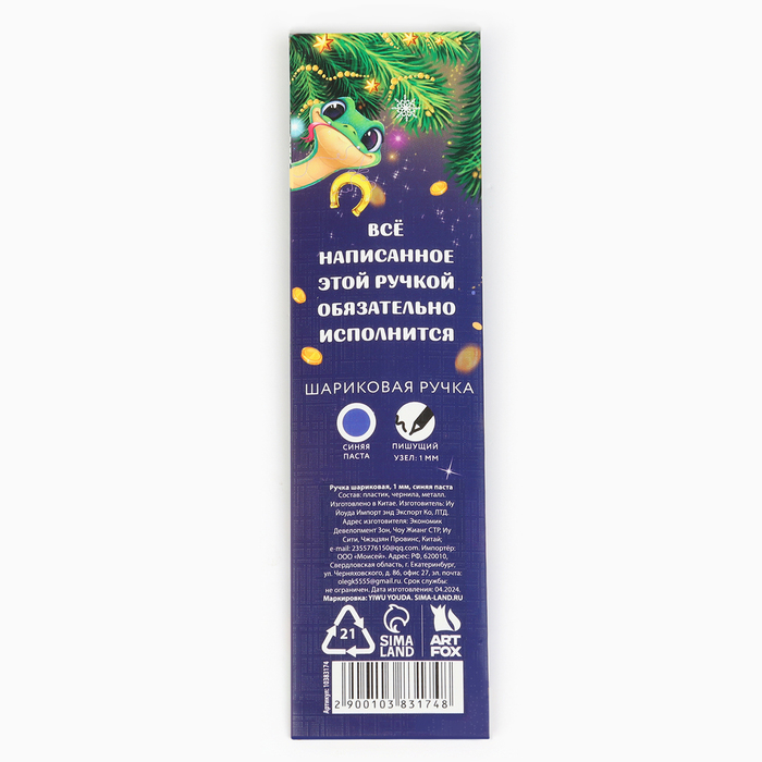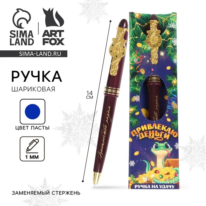 Ручка шариковая, синяя паста, 1.0 мм, автоматическая, пластик, в конверте «Новый год: Привлекаю деньги» — Характеристики