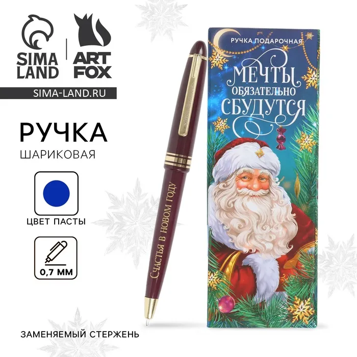 Ручка шариковая, синяя паста, 1.0 мм, автоматическая, в подарочной коробке «Новый год: Мечты обязательно сбудутся» — Характеристики