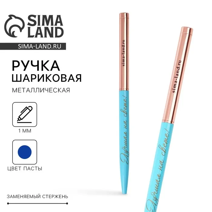 Ручка шариковая, синяя паста, 1.0 мм, металлическая с поворотным механизмом «Лучшая на свете!» — Характеристики