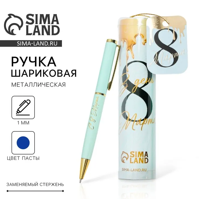 Ручка шариковая, синяя паста, 1.0 мм, металлическая в тубусе «В день 8 Марта» — Характеристики