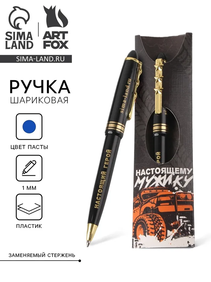 Ручка шариковая синяя паста 1.0 мм «Настоящему мужику» пластик, подарочная — Характеристики