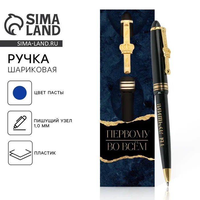 Ручка шариковая синяя паста 1.0 мм «Первому во всем» пластик, подарочная — Характеристики