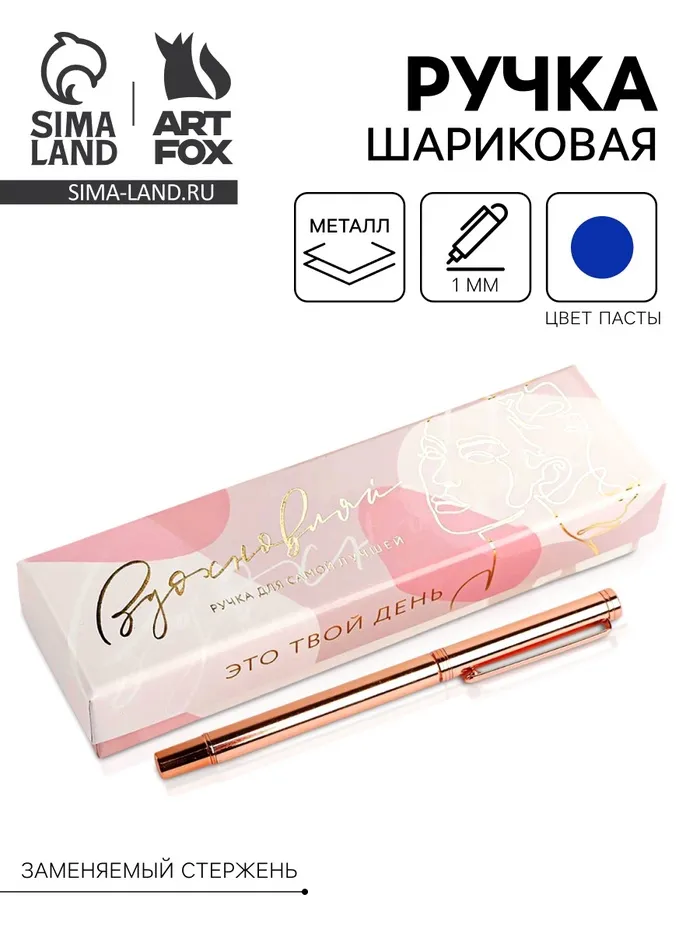 Ручка шариковая, синяя паста, 1.0 мм, розовое золото металл в подарочной коробке «Вдохновляй» — Характеристики