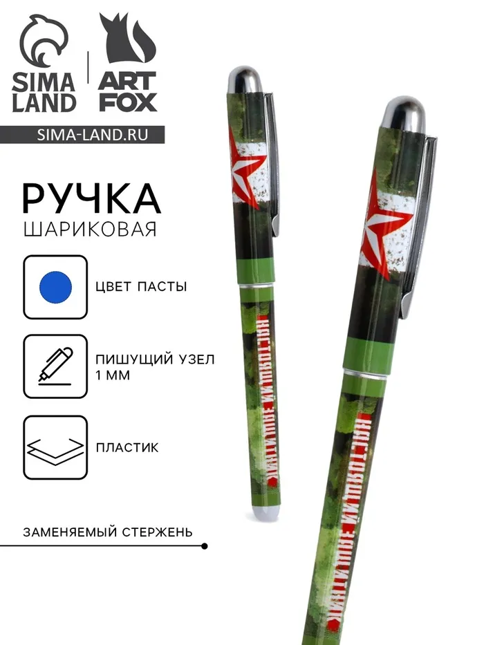 Ручка шариковая, синяя паста 1.0 мм с колпачком пластик «Настоящий защитник» — Характеристики