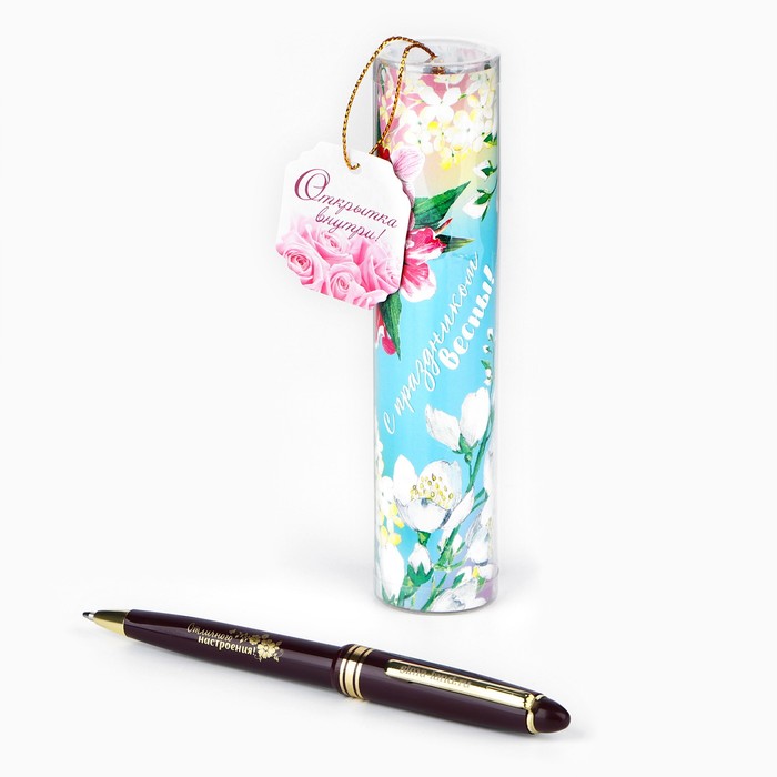 Ручка шариковая, синяя паста, 1.0 мм, в тубусе, пластик «С праздником весны» — Характеристики