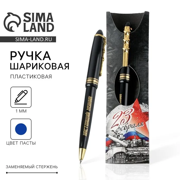 Ручка шариковая синяя паста «23 февраля танк», пластик — Характеристики