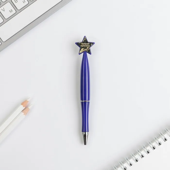 Ручка шариковая синяя паста «Крутой мужик», пластик, со звездой на подложке-погон — Характеристики