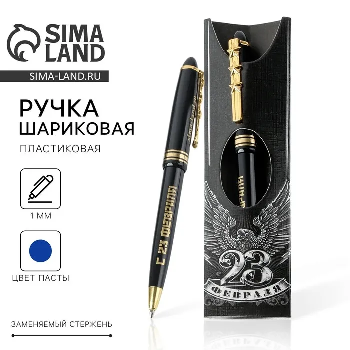 Ручка шариковая, синяя паста, пластик «23 февраля орёл» — Характеристики
