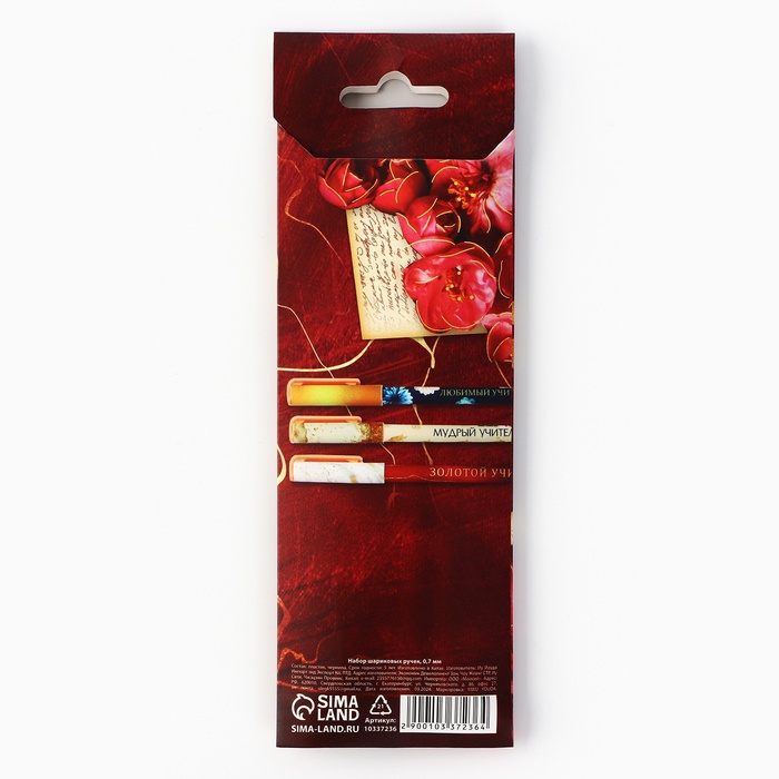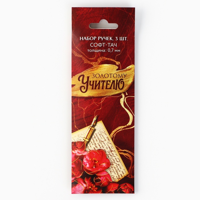 Ручка шариковая, синяя паста, пластик с колпачком софт-тач, 3 шт., 0.7 мм «Золотому Учителю» — Характеристики