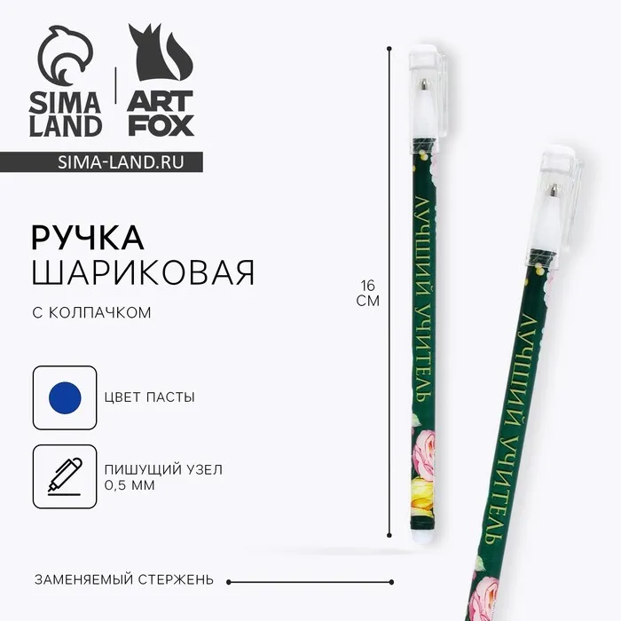 Ручка шариковая, синяя паста, пластиковая с колпачком, шариковая, 0.5 мм «Лучший учитель» — Характеристики