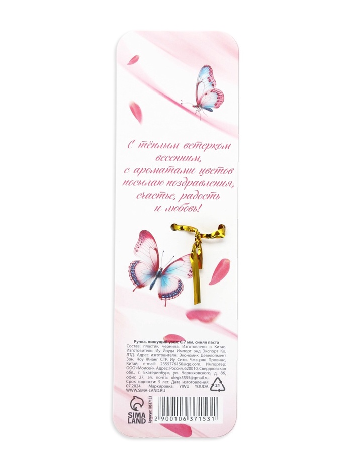 Ручка шариковая, синяя паста, пластиковый корпус, автоматическая 0.7 мм «С 8 марта, самая лучшая» — Характеристики
