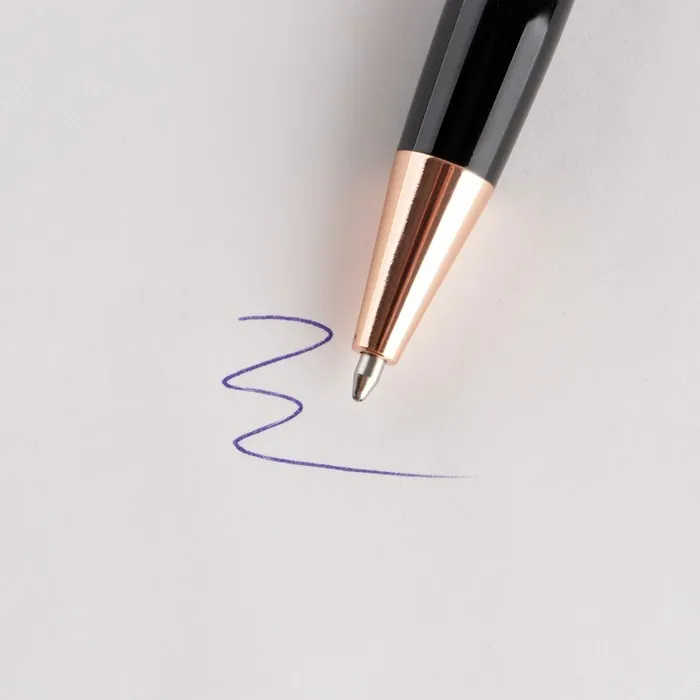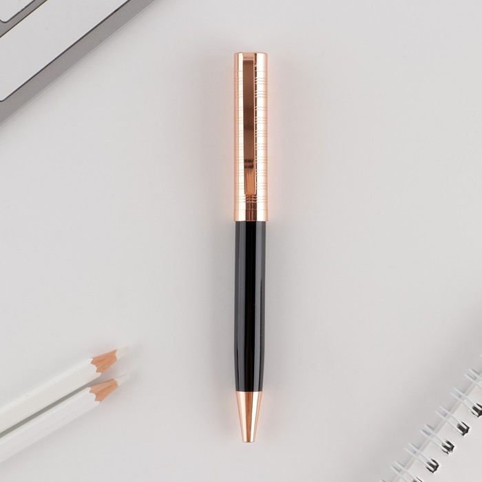 Ручка шариковая, синяя паста, рифленая, корпус чёрный с золотом, металл, 0.1 мм — Характеристики