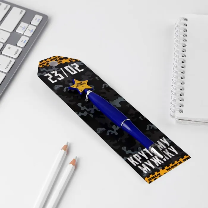 Ручка шариковая синяя паста «С 23 февраля», пластик, со звездой на подложке-погон — Характеристики