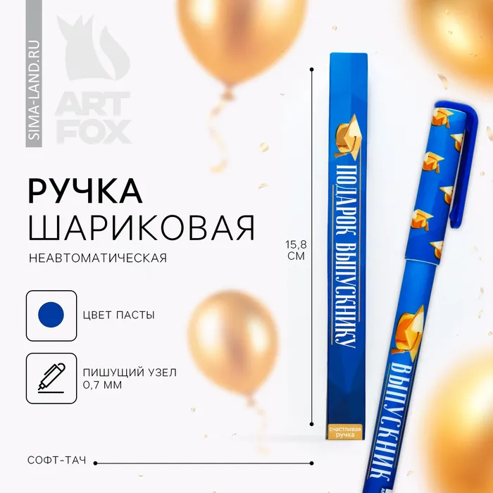 Ручка шариковая, синяя паста, софт-тач, 0.7 мм «Подарок выпускнику» — Характеристики