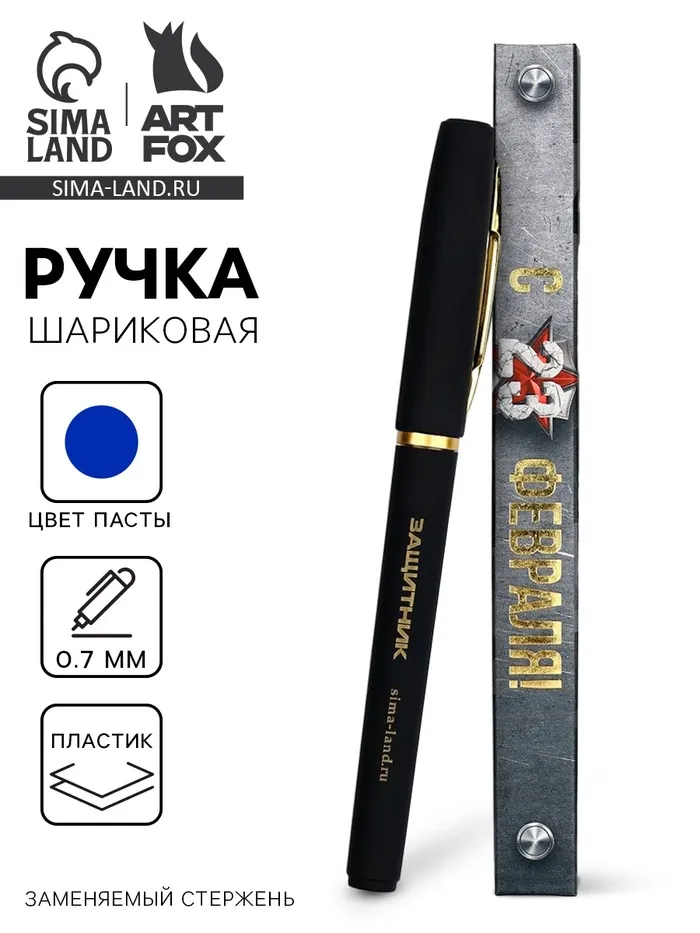 Ручка шариковая, синяя паста, в коробке, пластик «С 23 февраля, защитник» — Характеристики
