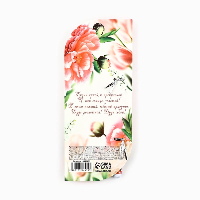 Ручка шариковая, синяя паста в открытке 1.0 мм «8 марта: Цвети этой весной» — Характеристики