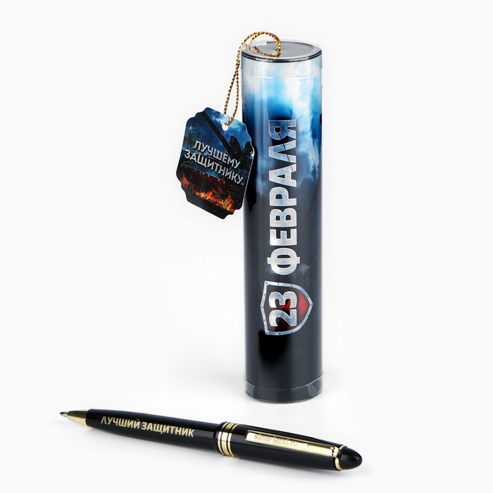 Ручка шариковая синяя паста в тубусе "23 февраля", пластик — Характеристики