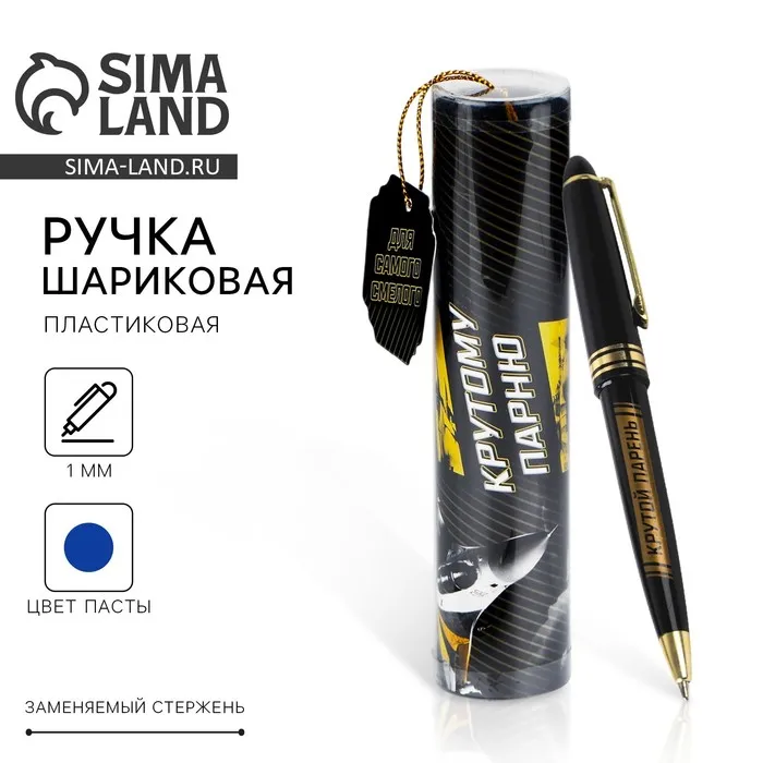 Ручка шариковая синяя паста в тубусе "Для самого смелого", пластик — Характеристики