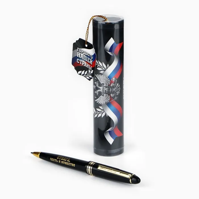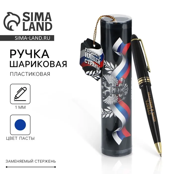 Ручка шариковая синяя паста в тубусе «Гордость нашей страны», пластик — Характеристики