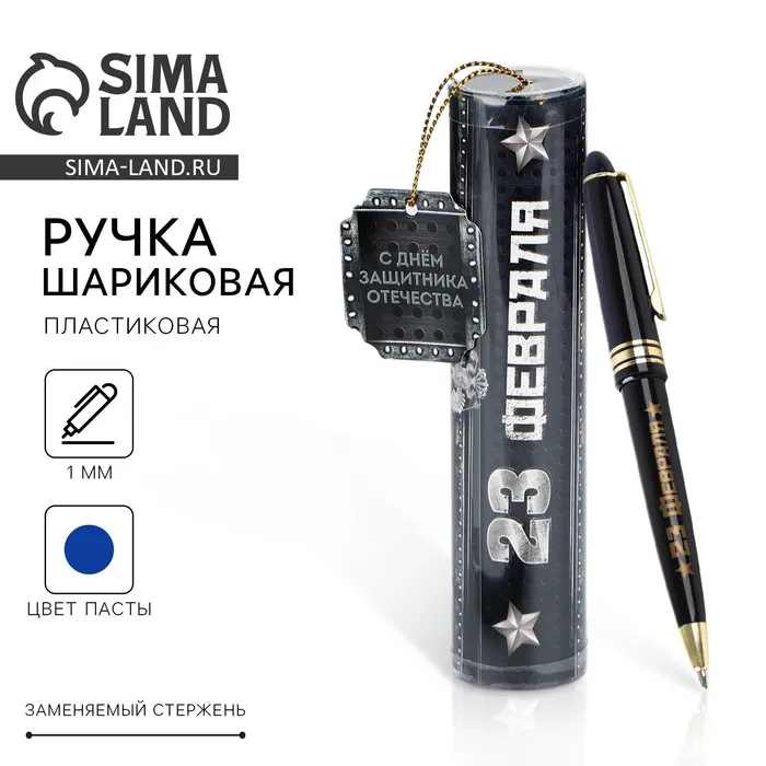 Ручка шариковая, синяя паста в тубусе, пластик «23 февраля» — Характеристики