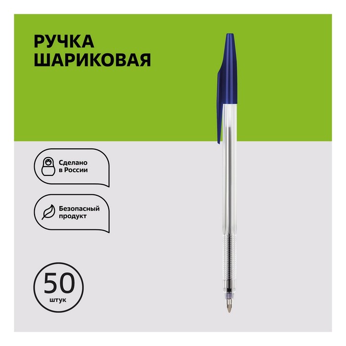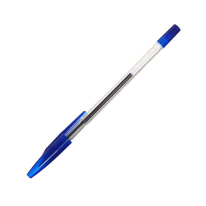 Ручка шариковая с синим стержнем. Вентилируемый колпачок надёжно фиксируется на корпусе ручки. Специальные насечки на корпусе для удобного захвата. Синие чернила на масляной основе. Толщина линии письма 0,7 мм. Длина стержня 130 мм. На каждой ручке имеется штрихкод.