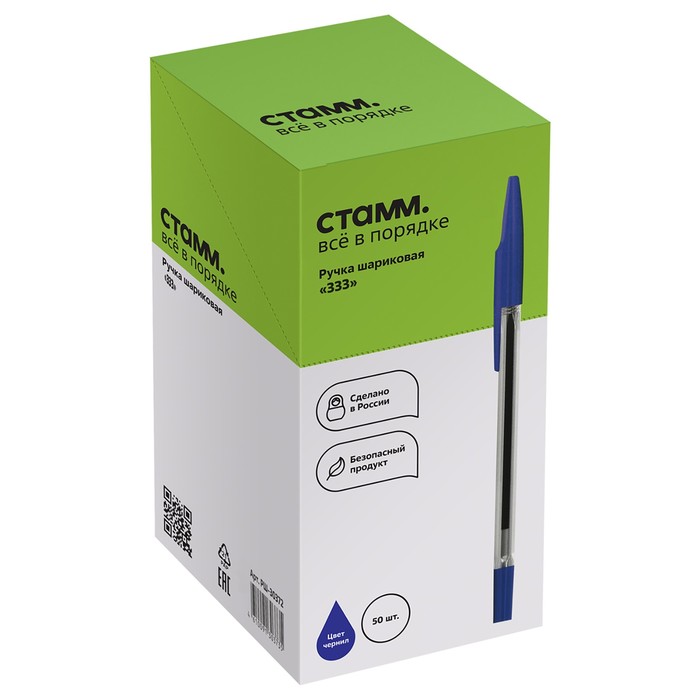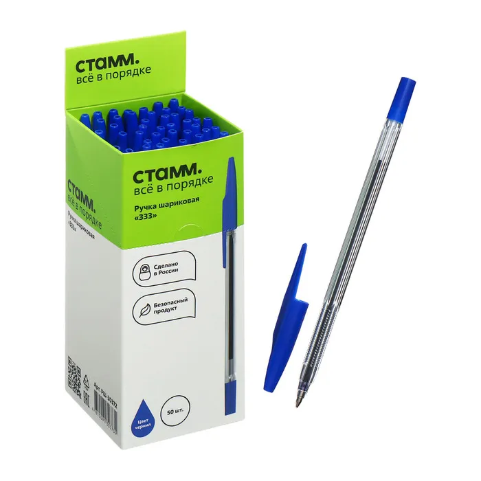 Ручка шариковая Стамм "333", узел 0,7 мм, стержень синий, корпус прозрачный — Характеристики
