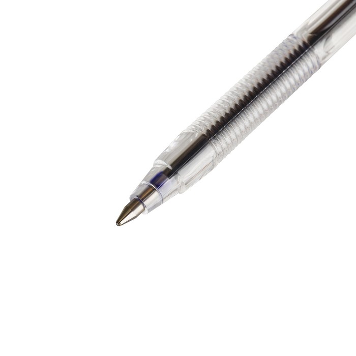 Цвет чернил: синий;Цвет корпуса: прозрачный;Диаметр пишущего узла: 0,7 мм;Толщина линии письма: 0,5 мм;Форма корпуса: шестигранная;Вентилируемый колпачок: да;Вид товара: ручка шариковая;Тип наконечника: стреловидный;Многоразовая: да;Наличие резинового грипа: нет;Зона захвата: пластиковая с рифлением;Чернила на масляной основе: да;Длина письма: 1500 м;Код сменного стержня: 9750629;Материал корпуса: пластик;Цвет корпуса: прозрачный;Клип: пластиковый;Диаметр корпуса: 8,5 мм;Длина ручки с колпачком: 153 мм;Длина ручки без колпачка: 149 мм;Наличие штрихкода на ед. товара: есть;Упаковка ед. товара: нет;Наличие европодвеса: нет;Вид минимальной групповой упаковки: картонная коробка-дисплей;Морозоустойчивость: да.