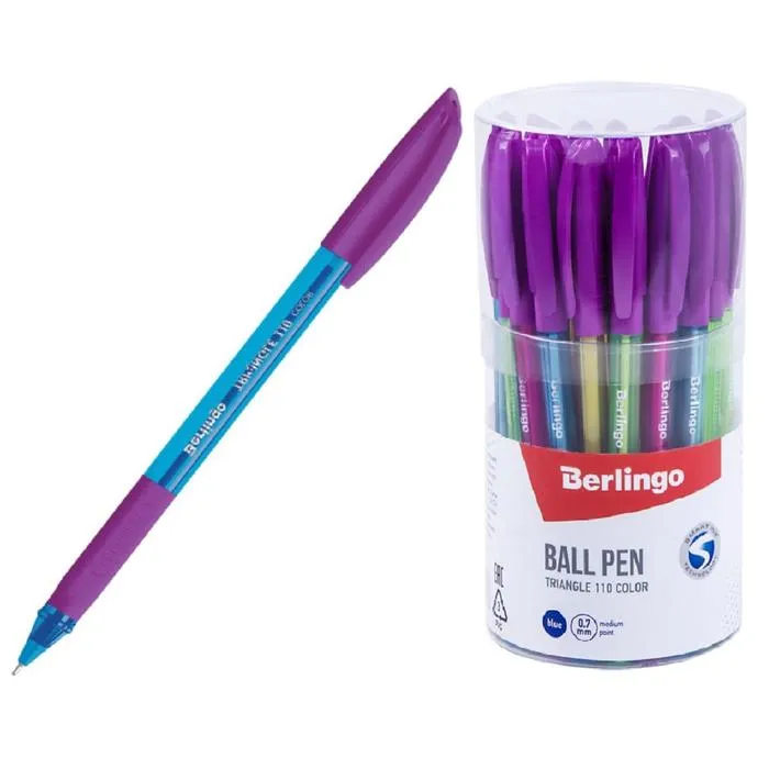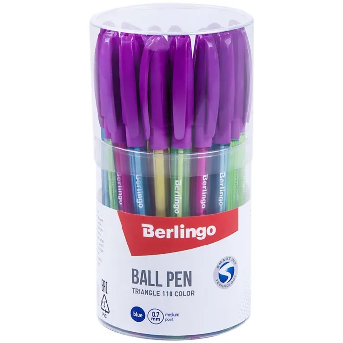 Одноразовая шариковая ручка Berlingo Triangle 110 Color, оснащенная вентилируемым колпачком и пластиковым клипом. Корпус ручки имеет эргономичную трехгранную форму, а цвет деталей соответствует цвету чернил. Резиновый эргономичный упор для пальцев предотвращает усталость и скольжение пальцев при письме.Диаметр пишущего узла составляет 0,7 мм, благодаря чему ручка прекрасно подходит для любого стиля письма. Толщина линии письма – 0,5 мм, а длина – 1000 м. Уникальная запатентованная технология Smart Ink обеспечивает лёгкое и приятное письмо, за счёт использования чернил пониженной вязкости и инновационных материалов шарика, пишущего узла и его специальной конструкции. Инновационные компоненты, используемые для изготовления шарика пишущего узла (карбид вольфрама), обеспечивают долговечность и стабильность качества письма. Технология: Smart Ink,Цвет чернил: синий,Толщина линии письма: 0,5 мм,Длина письма: 1000 м,Цвет корпуса: микс из 4-х дизайнов.