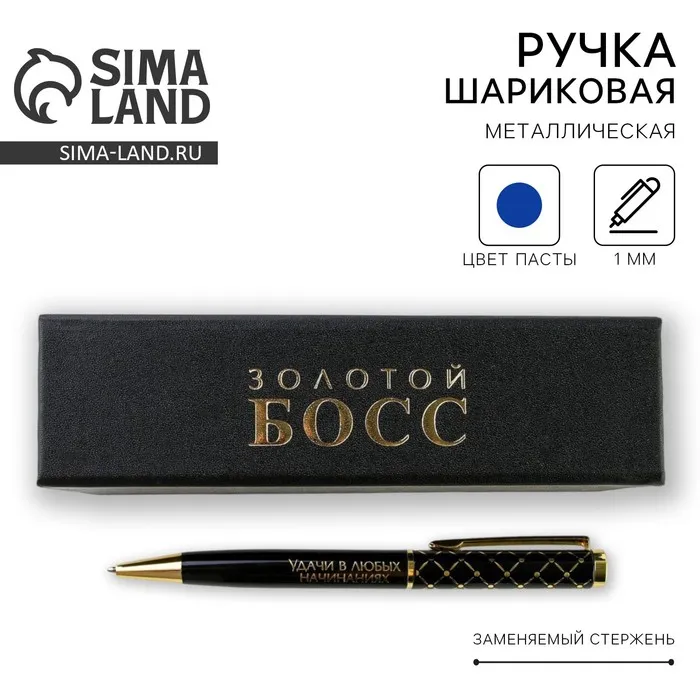 Ручка шариковая в футляре, металл, 1.0 мм, синяя паста «Золотой БОСС» — Характеристики