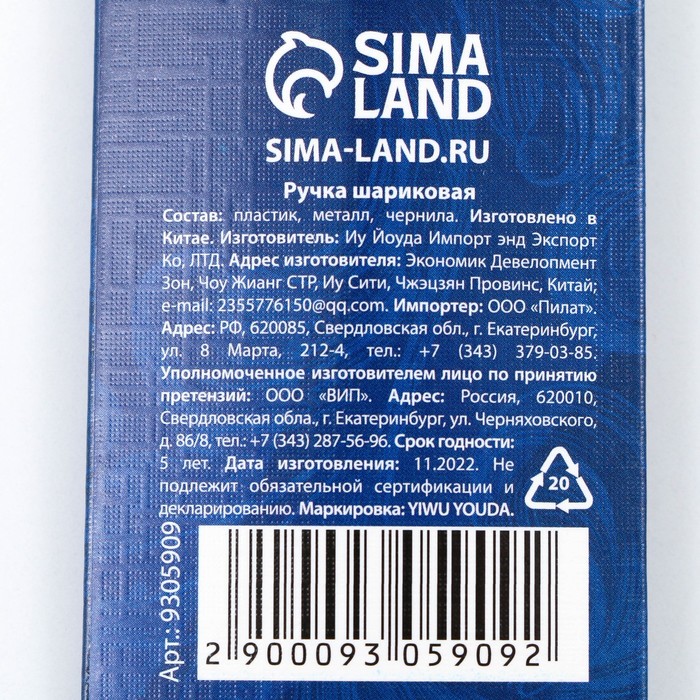 Ручка шариковая, в конверте, пластик, синяя паста, 1.0 мм «Удачи тебе, выпускник!» — Характеристики