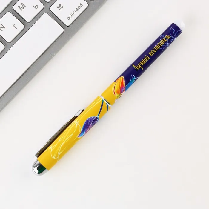 Ручка отлично подойдет в качестве подарка. Яркий дизайн несомненно привлечет внимание и будет выделяться среди других предметов, а удобная форма корпуса позволит использовать ее с комфортом.