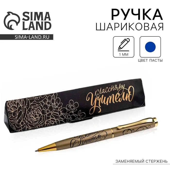 Ручка шариковая в подарочном футляре, металл, синяя паста, 1.0 мм «Классному учителю» — Характеристики