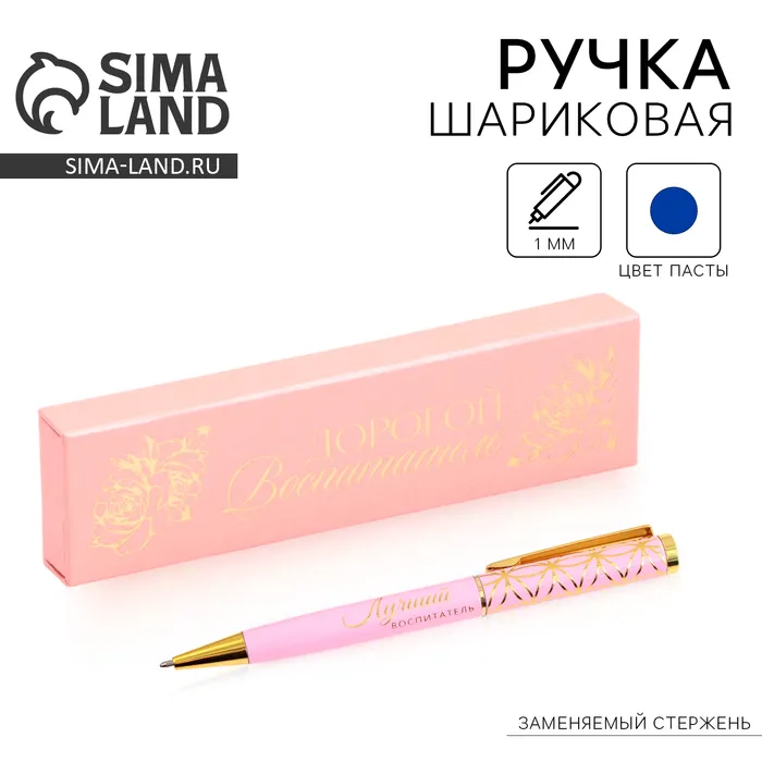 Ручка шариковая в подарочном футляре металл, синяя паста, пишущий узел 1.0 мм «Воспитателю: Дорогой Воспитатель» — Характеристики