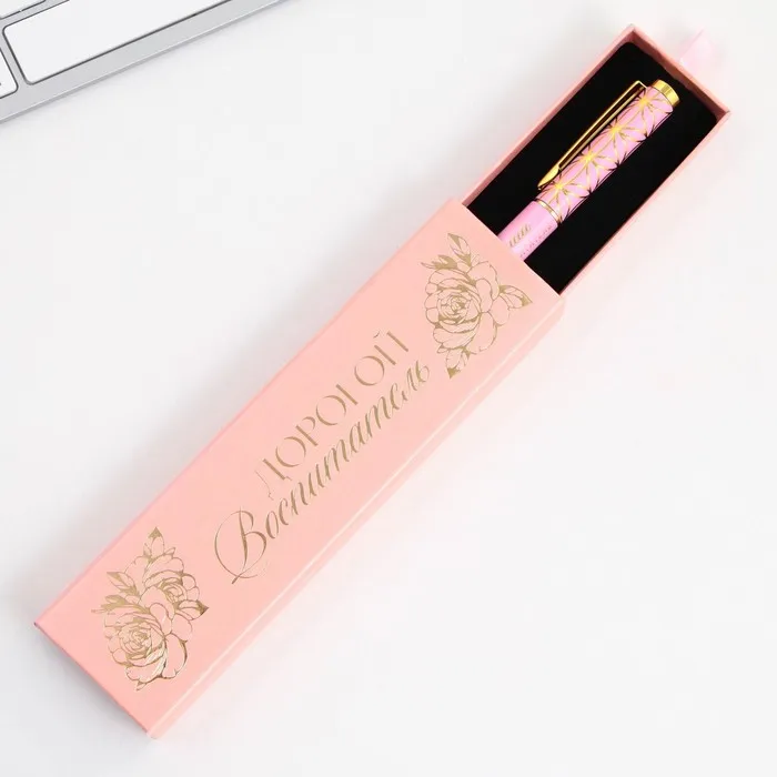 Ручка шариковая в подарочном футляре металл, синяя паста, пишущий узел 1.0 мм «Воспитателю: Дорогой Воспитатель»