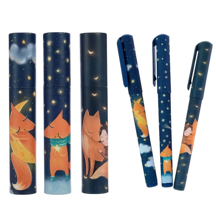 Ручка шариковая в тубе DreamWrite "Лисята", узел 0.7 мм, синие чернила, матовый корпус Silk Touch, МИКС — Характеристики