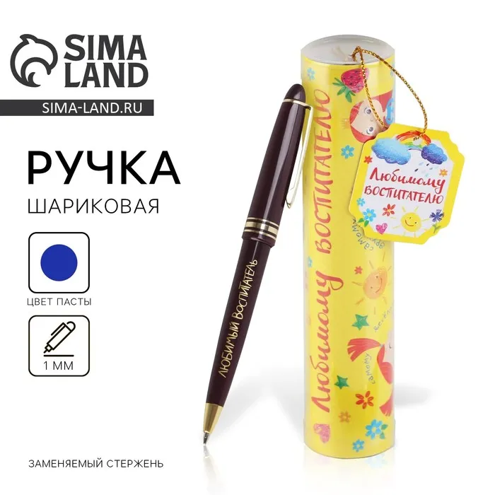 Ручка шариковая в тубусе пластик, синяя паста, 1.0 мм «Любимому воспитателю» — Характеристики