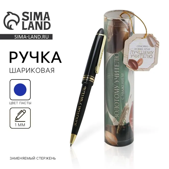 Ручка шариковая в тубусе, пластик, синяя паста, 1.0 мм «Золотому учителю, с уважением!» — Характеристики