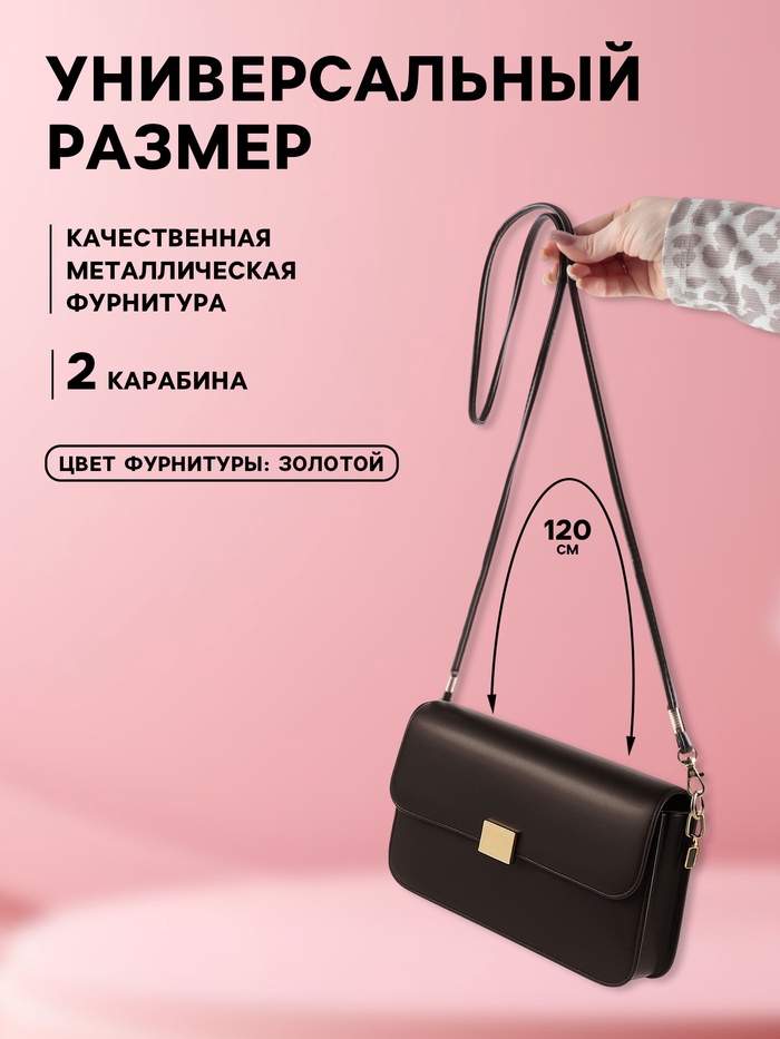 - Универсальная длина — 120 см — подходит под разные способы ношения сумки.