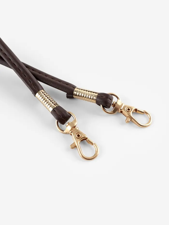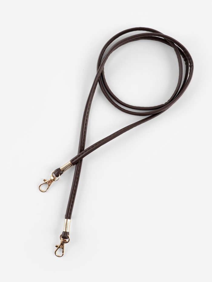 Ручка-шнурок для сумки с карабинами — стильное и удобное решение для обновления вашего аксессуара. Длина 120 см позволяет носить сумку на плече, через плечо или в руке. Коричневый цвет в сочетании с золотой фурнитурой добавляет образу теплоты и элегантности. Изготовлена из искусственной кожи — практичного и долговечного материала.