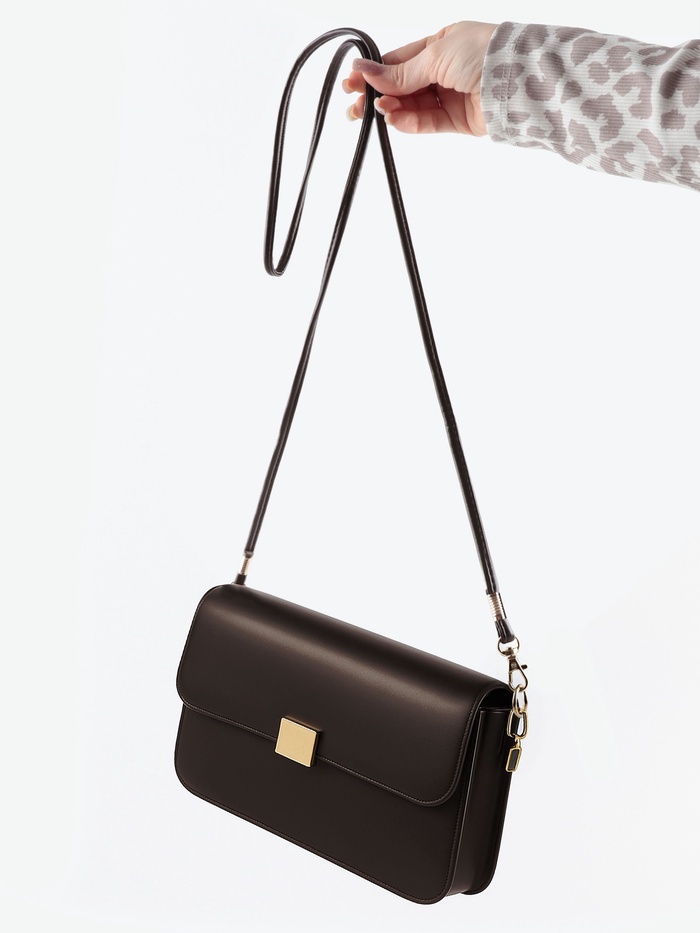 - Коричневый оттенок — гармонично сочетается с разными цветами сумок, от классических до ярких.