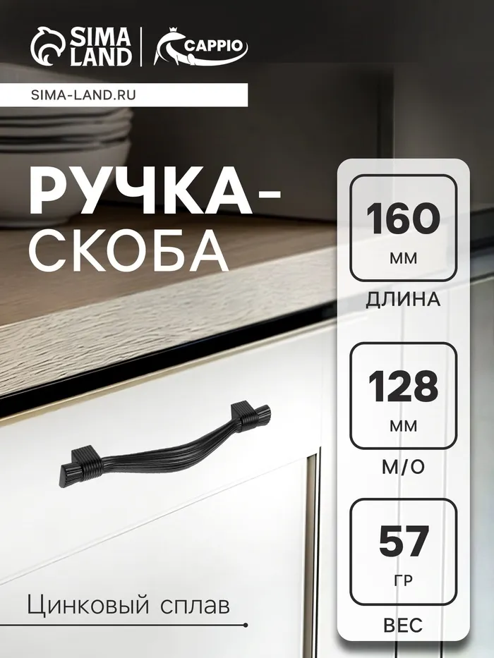 Ручка-скоба CAPPIO RSC018, цинк, м/о 128 мм, цвет черный — Характеристики