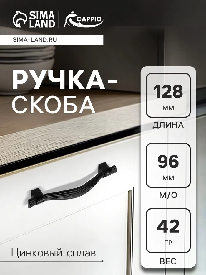 Ручка-скоба CAPPIO RSC018, цинк, м/о 96 мм, цвет черный — Характеристики