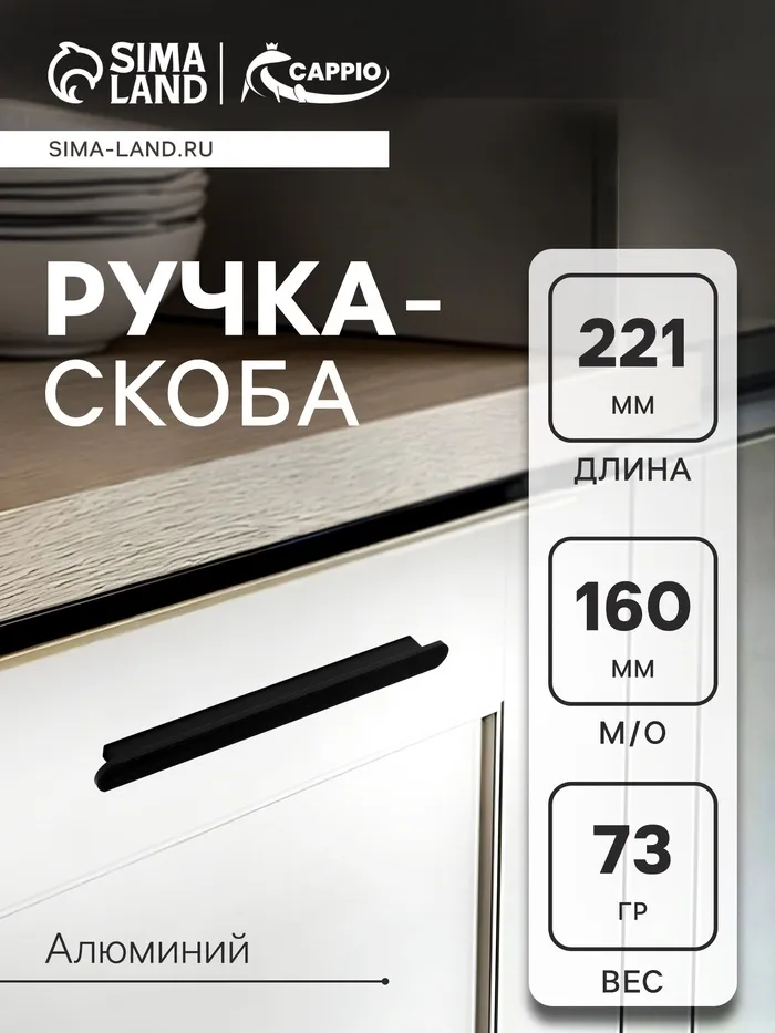 Ручка-скоба CAPPIO RSC102, алюминий, м/о 160 мм, цвет черный — Характеристики