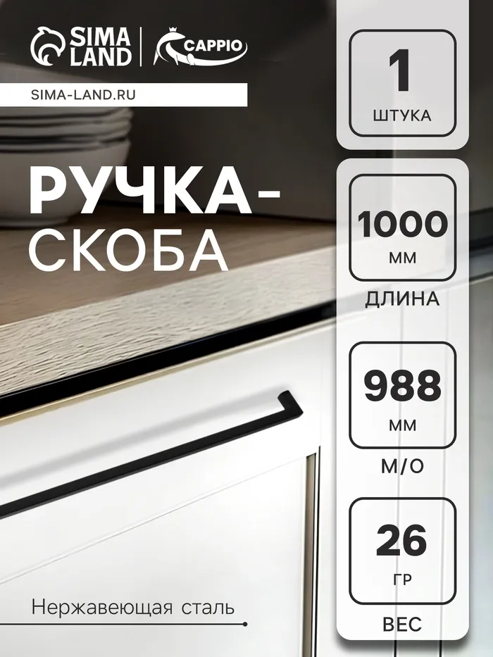 Ручка-скоба CAPPIO SQUARE RSC008, нержавеющая сталь, м/о 988 мм, цвет черный — Характеристики