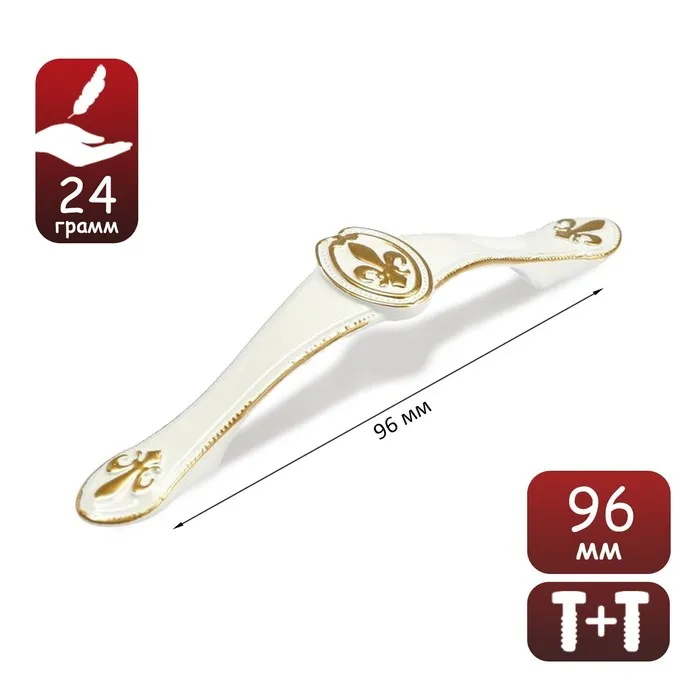 Ручка-скоба мебельная LIGHT, м/о 96 мм, белая с золотом — Характеристики