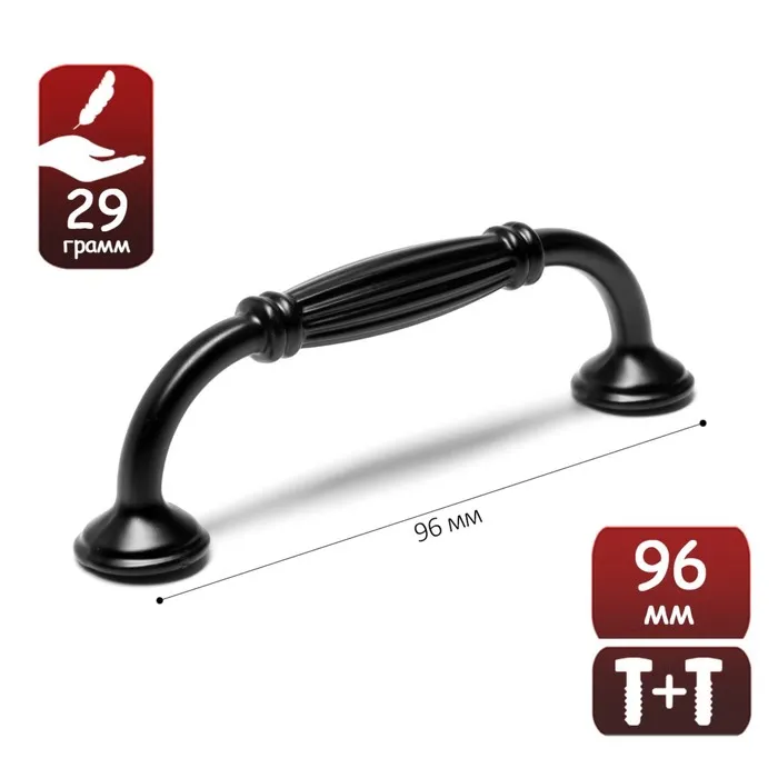 Ручка-скоба мебельная PC176, м/о 96 мм, цвет черный — Характеристики