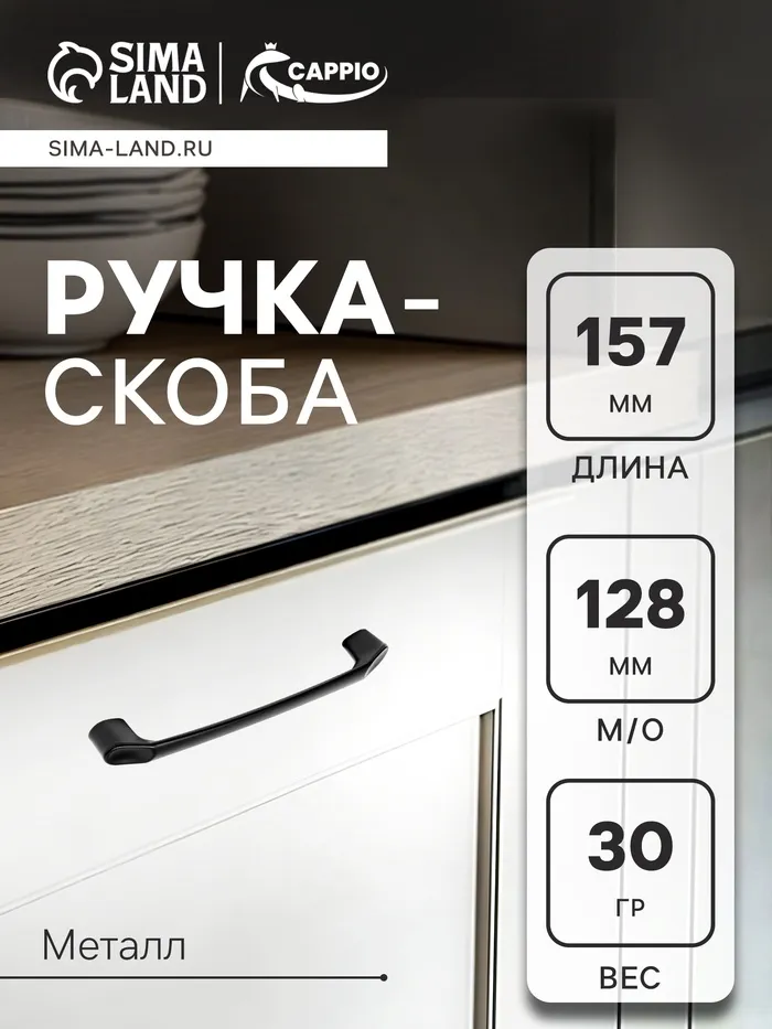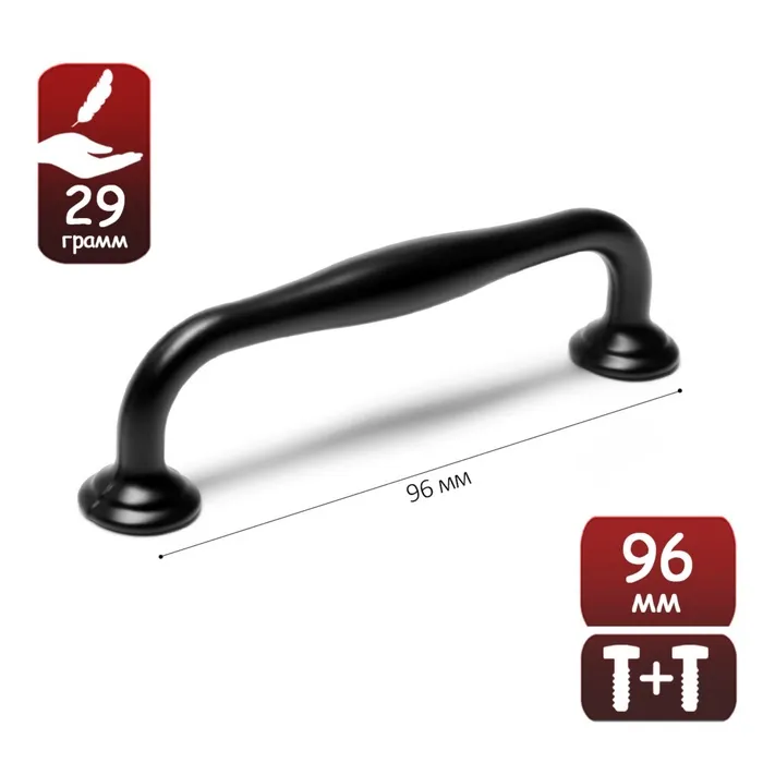 Ручка-скоба мебельная WAVE PC173BL, м/о 96 мм, цвет чёрный — Характеристики