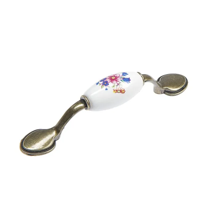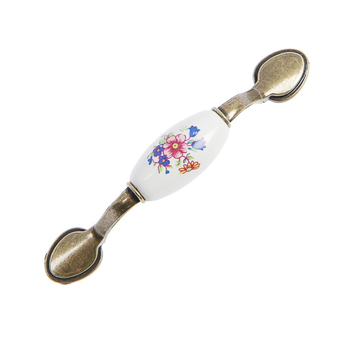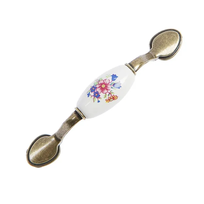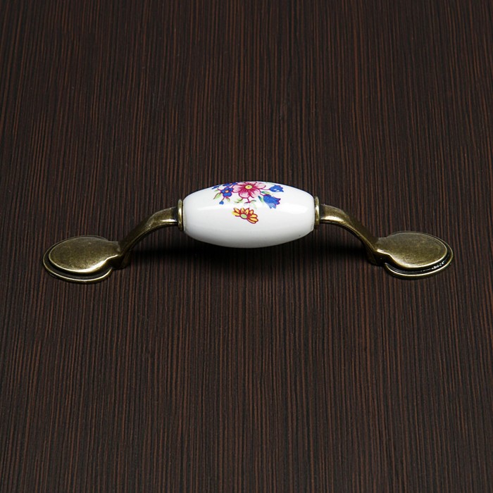 Ручка скоба FLOWER Ceramics изготовлена в дизайнерском стиле из металла с керамической вставкой.