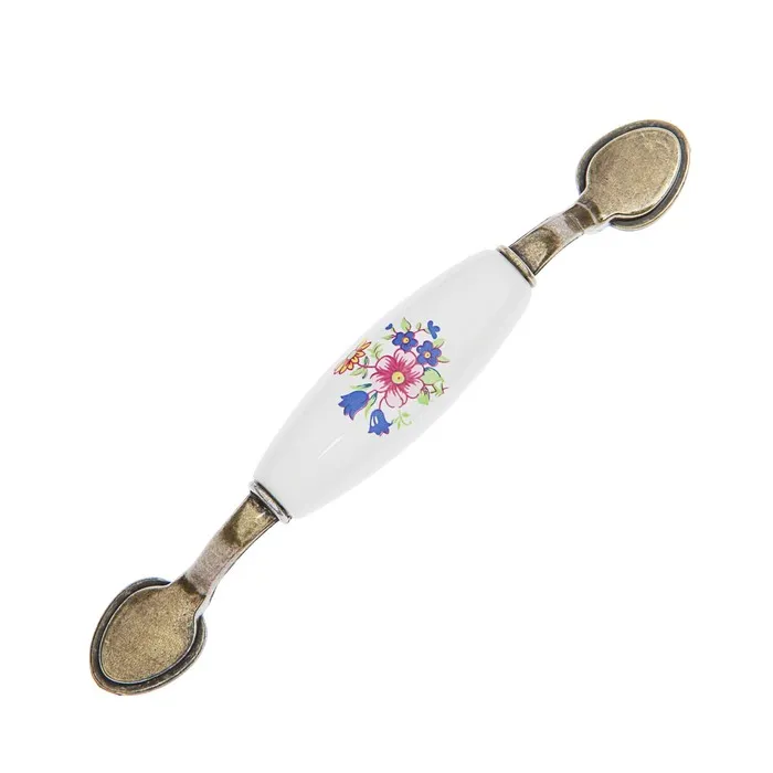 Ручка скоба FLOWER Ceramics изготовлена в дизайнерском стиле из металла с керамической вставкой.